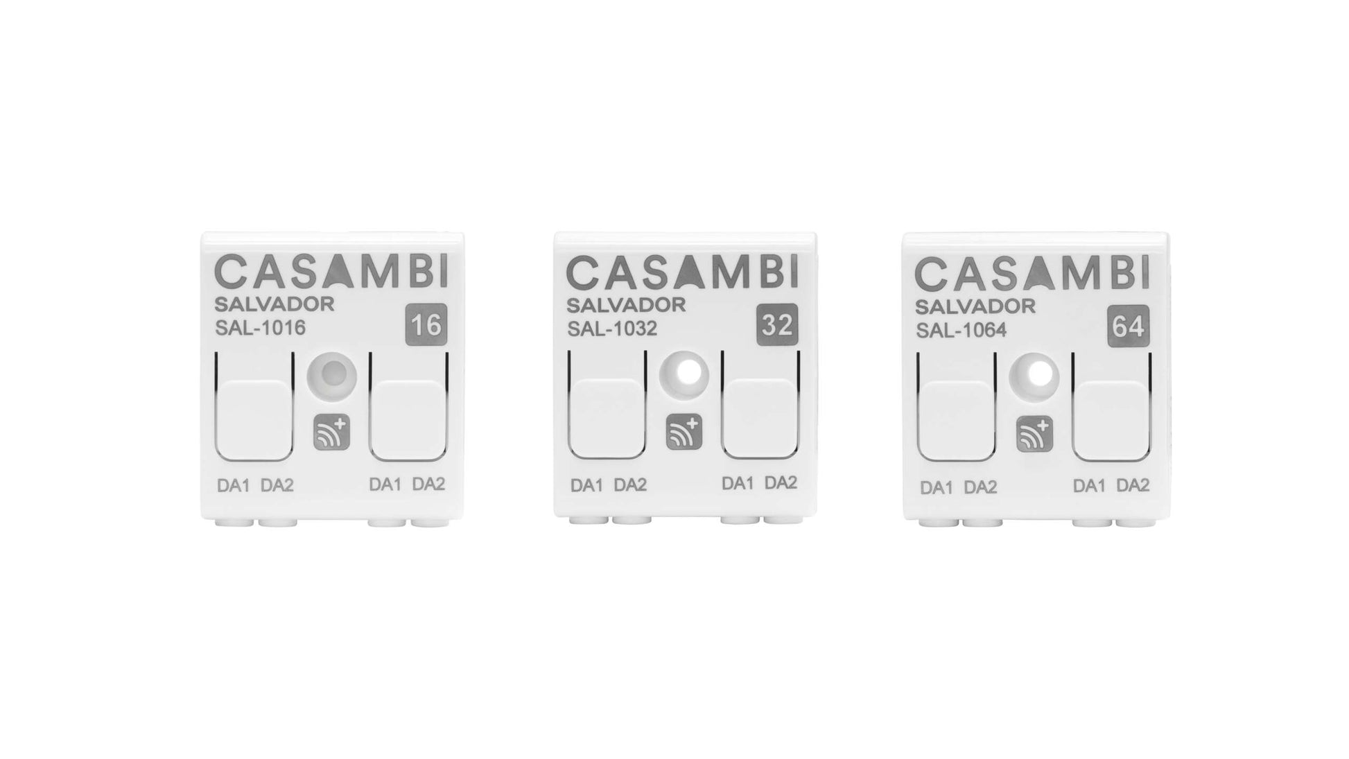 Casambi Salvador Series 1000 DALI controllers product family includes three models: SAL-1016, SAL-1032 and SAL-1064.