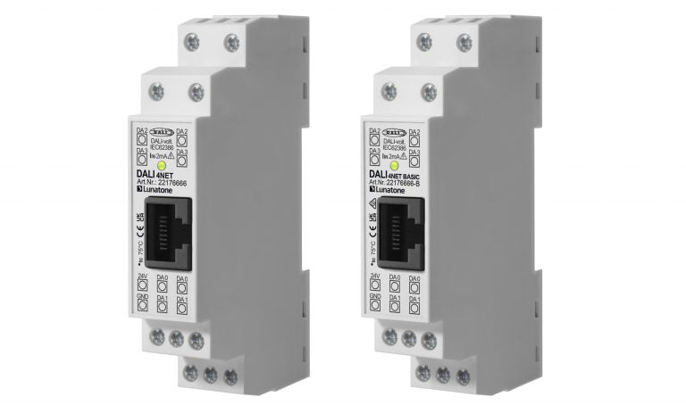 Lunatone DALI 4Net - This compact 1HP DIN rail module enables the independent control of up to 4 DALI lines, which equals 256 DALI operating devices. Efficient scaling is possible with external DALI bus supplies. Via the DALI4Net connected control devices and control gear can be configured via Ethernet with the DALI Cockpit Software. Using the Modbus TCP interface the DALI 4Net can be accessed for control and visualisation or connected to a building control system. Further functions are: cross line control functions for sensors, real time clock, scheduler.